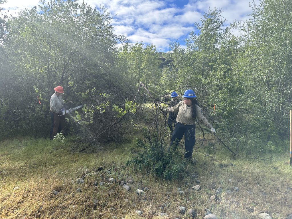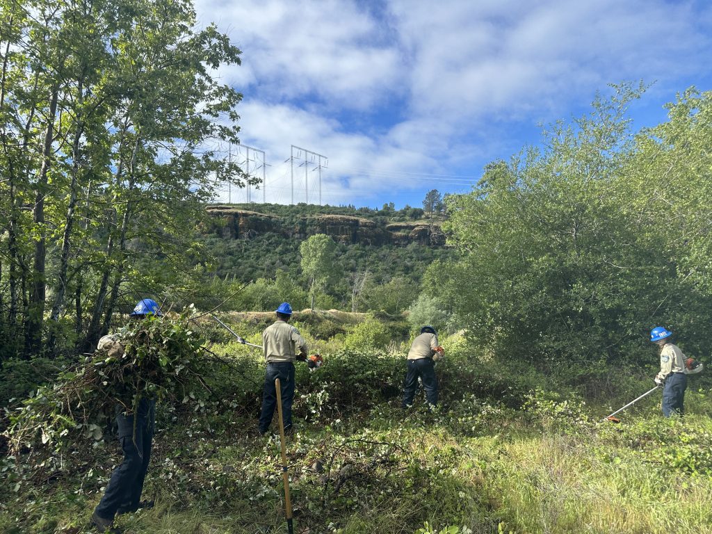 After more than two years of project development, design and evaluation, we have officially started the first phase of this multi-year project to restore the condition and functionality of the floodplain in lower Butte Creek Canyon on the California Department of Fish and Wildlife Ecological Reserve. This area was mined multiple times, first by large gold dredgers and later by sand and gravel extraction equipment. The featured image is from 1962 after all the dredgers were gone. Sand and gravel mining continued into the 1980’s which created a series of large ponds, some linear and some more rounded. The upstream (to the right) ponds in the 1984 photo were the site of the approved development of 72 condos surrounding the ponds. A citizen initiative got the project on the Butte County Election ballot and the project was overwhelmingly rejected by the voters. The most recent photo from 1998 shows how the creek changed course in the 1986 flood and obliterated the condo ponds. Disaster averted thanks to the public! The last photos show the California Conservation Corp crew members opening up access to one of the pond for survey work and installation of piezometers (groundwater monitoring wells). Lots more work to come and we are excited to get started!